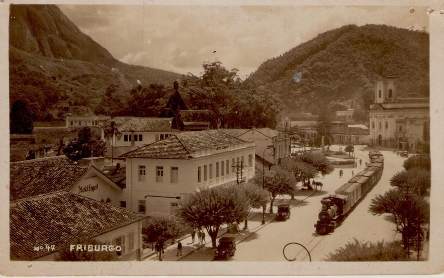 Em outros artigos, já descrevi como era uma viagem de trem a Nova Friburgo. Mas volta e meia localizamos registros de memorialistas que recordam a experiência dessa viagem no passado. É sempre interessante revisitá-la e registrá-la. O trem de “passeio” saía no sábado à tarde da Estação de Maruí, em Niterói, e regressava na manhã de segunda-feira. Era o trem dos veranistas. Como durante algum tempo os lugares não eram fixados, havia muito sarilho, e a confusão era frequente. Alguns marcavam lugares para os retardatários, mas passageiros indignados com a “marcação”, removiam os “embrulhinhos” e sentavam no local. Os retardatários ao chegarem reclamavam e muitas vezes facas e revólver eram apontados durante a discussão. Logo que o trem partia, os viajantes envergavam o guarda-pó em razão da poeira que vinha do leito da estrada de chão batido. Nuvens de poeira entravam pelos carros do trem de modo assustador e em razão disso, fechavam-se as janelas, apesar do calor causticante. Na baixada fluminense a paisagem era de casas arruinadas, terrenos alagados, a população alquebrada e macilenta em razão das doenças que grassavam naquela localidade. Duas paradas eram aguardadas com ansiedade: a de Porto das Caixas e a de Cachoeiras de Macacu. Na primeira estação, vendedores pressurosos expunham suas mercadorias como laranja seleta e bahia, tangerinas, cajus, cambucás, sapotis, fruta do conde, banana, entre outras. Porém, era a chegada à estação de Cachoeiras de Macacu o momento mais aguardado e o fim da tormenta da baixada fluminense. Essa estação era bem movimentada. Todos os passageiros desciam para saborear as frutas e as afamadas empadas de camarão e palmito amargo. Vendedores de passarinhos entravam nos carros apregoando os rubros tiês e sabiás. A choradeira dos meninos era intensa quando os pais recusavam a compra dos pássaros e os vendedores só deixavam o carro quando o trem partia. Na subida da serra a temperatura mudava e um ar sereno e fresco, embalsamado pelo frescor da mata, entrava pelos carros do trem. Nesse momento, os inúmeros doentes que procuravam Nova Friburgo em busca da cura ou alívio para os pulmões pegavam um agasalho, enquanto outros, embalados pela docilidade do clima, cochilavam. Cessava a mastigação dos alimentos e o chão do trem era um amontoado de papel e de cascas de frutas. O bem estar era geral. Quando se chegava ao fim da serra, mudava-se a locomotiva, pois para subir as montanhas o trem necessitava de uma cremalheira. Iniciava-se a descida rumo a Nova Friburgo. Quando se chegava à estação da cidade a saída do carro do trem era um verdadeiro atropelo. Boa parte da população friburguense se dirigia afoita até a estação para assistir a chegada do trem de “passeio”. Era um acontecimento social na cidade. Alguns iam esperar parentes e amigos, enquanto moças e rapazes corriam em peso envergando os seus melhores trajes para “ver e serem vistos” no rendez-vous. As moças de chapéu e luvas e os rapazes com “roupa de festa”. Era o momento para o acerto das festas à noite ou no domingo.
